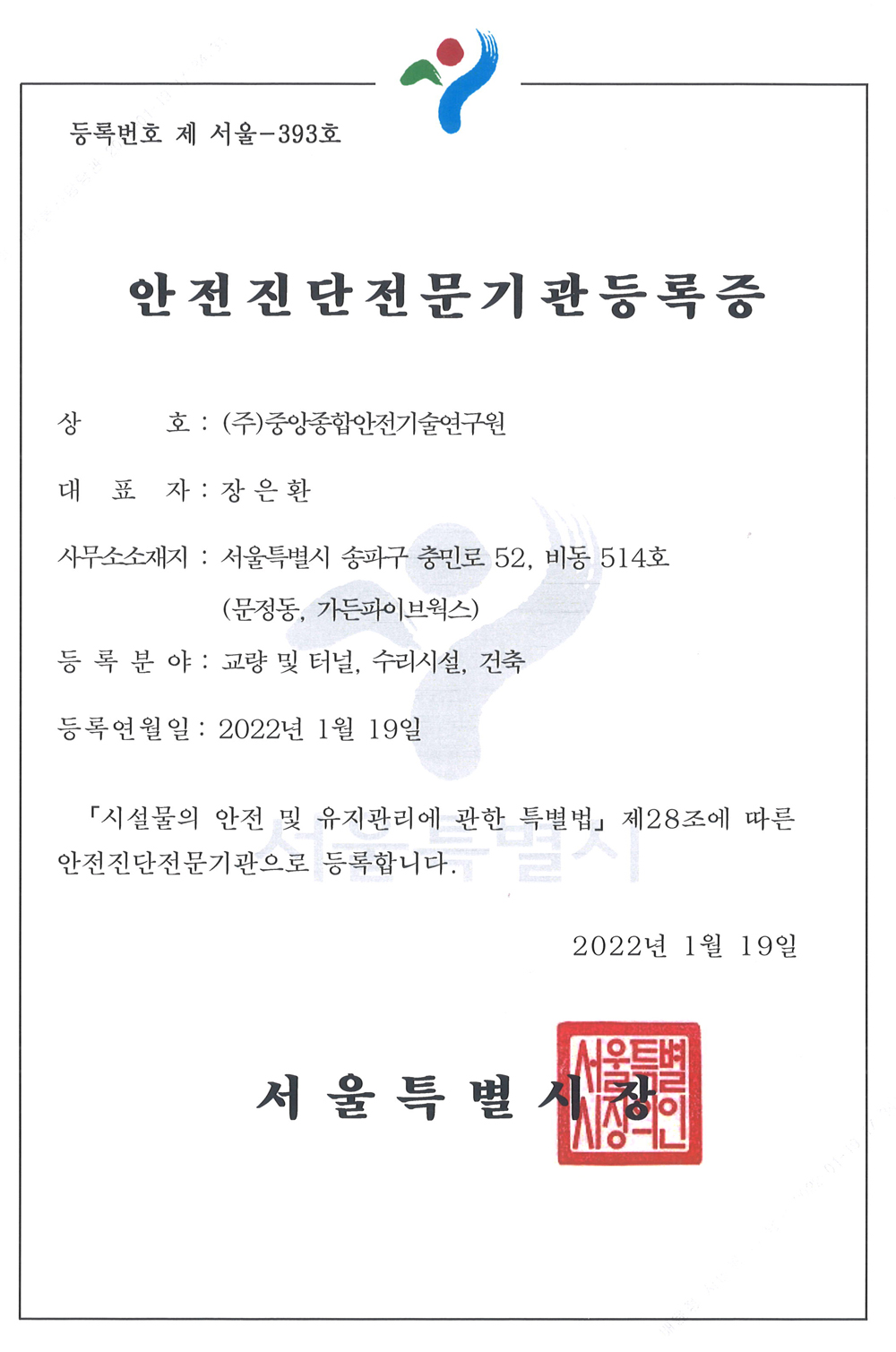 öµµ½Ã¼³ ¾ÈÀüÁø´ÜÀü¹®±â°ü µî·ÏÁõ